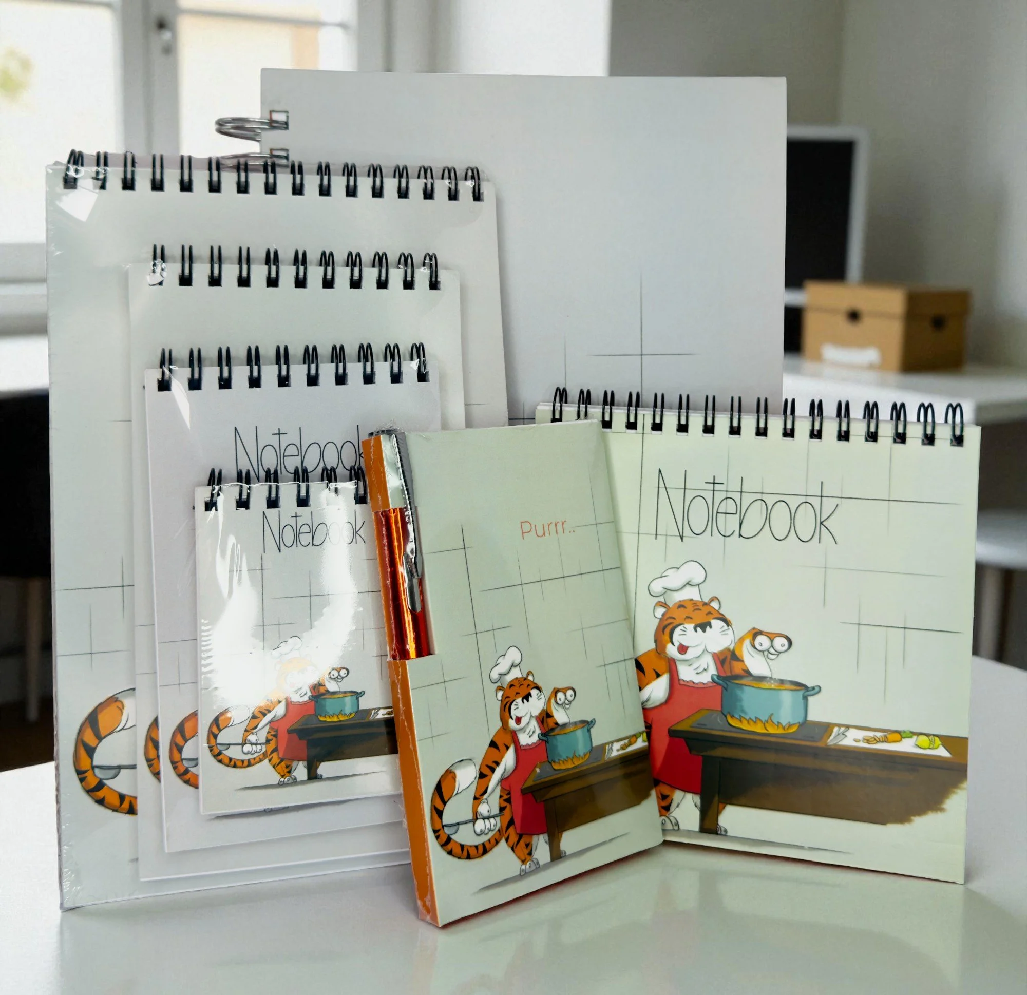 A stylish notebook set with a gray cooking tiger theme, bringing creativity and character to your writing routine.